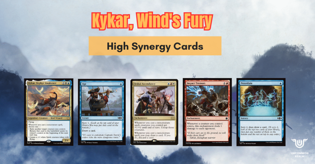 Kykar decks love casting spells, but not all spells are made equal. The upgraded version includes efficient interaction tools like Swords to Plowshares, Swan Song, and Counterspell to protect your setup. Meanwhile, tempo spells such as Lightning Bolt, Opt, and Brainstorm help maintain momentum while triggering Kykar’s ability. The deck’s game plan feels like a dance between offense and defense — you’re always casting, reacting, and reaping rewards from each instant or sorcery that hits the stack.