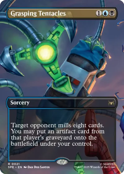 - 6 foil borderless scene cards: Grasping Tentacles, Pumpkin Bombs, Doc Ock, Green Goblin, Nemesis, and more